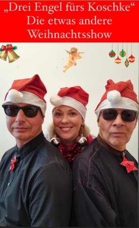 In der kultigen Kneipe Anna Koschke wird es dieses Jahr weihnachtlich – und vor allem richtig lustig! „3 Engel fürs Koschke“ ist ein Comedy-Weihnachtsprogramm voller skurriler Geschichten, witziger Überraschungen und viel Herz. Drei chaotische Engel versuchen, die Weihnachtsstimmung in der Kneipe zu retten – mit urkomischen Missgeschicken und jeder Menge Spaß. Ein perfekter Abend, um in gemütlicher Atmosphäre zu lachen und sich auf die Feiertage einzustimmen!