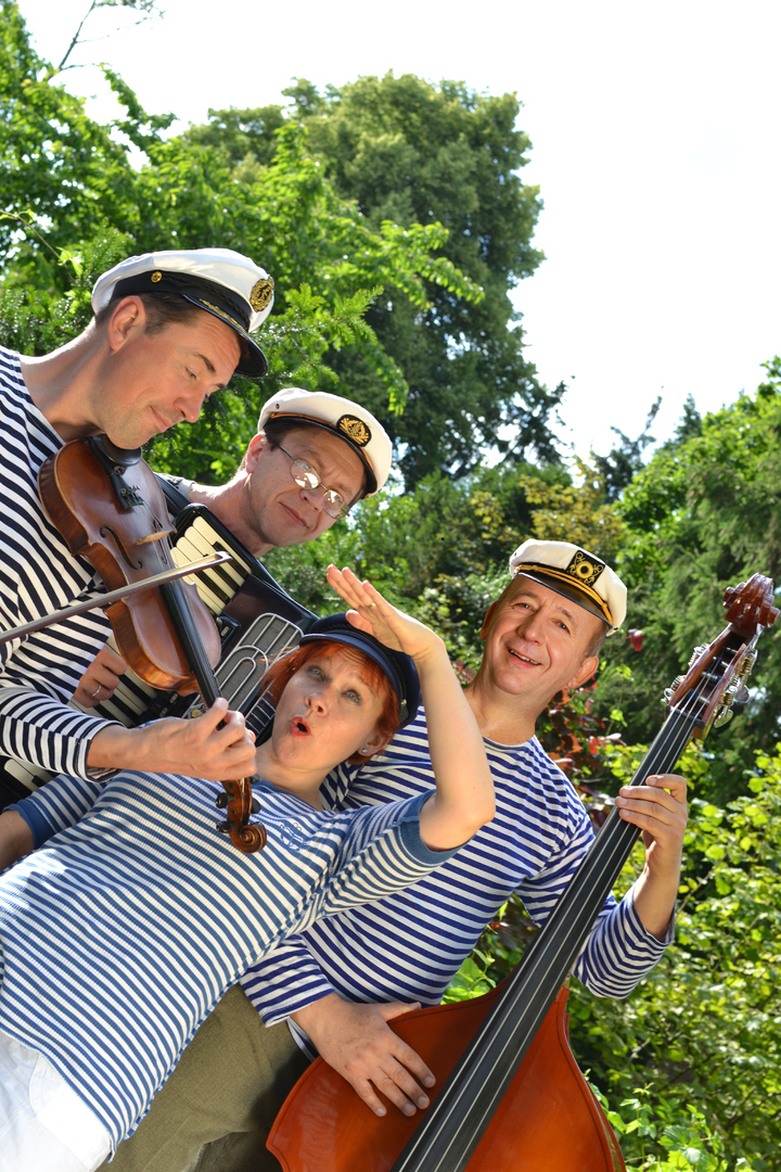 Sonntag, 28. September, 18 Uhr in der Alt-Berliner Café-Bar „Anna Koschke“ (Krausnickstraße 11)mit Chanson-Nette & der ukrainisch-russischen Band „Trio Scho“ Ahoi! „Klar zum Kentern!“ Hier kommt die schräge maritime Show für seegangstaugliche Berliner.Aber keine Sorge, die „Anna Koschke“ gerät nicht in Schräglage, wenn das Trio Scho mit Geige, Akkordeon und Kontrabass loslegt und Chanson-Nette Lieder der Binnenschiffer und Seemänner von einst bis heute singt. Auch Chansons von Georges Brassens oder Friedrich Hollaender kommen mit neuem Schwung über die Reling, angetörnt durch Gefühlswellen, durch seichte und tiefe Gewässerangesichts der krisengeschüttelten Weltlage – aber immer auf Kurs, bei Windstärke 12!Berliner Landratten wagen sich bei diesem musikalisch-kabarettistischen Programm auf See, aber nicht nur mit Rumbuddeln und Seemannsbräuten. Die Berliner Ex-Spreejungfrau quasselt mit Gennadij Desatnik, Valeriy Khoryshman und Alexander Franz, kurz, mit ihren Jungs, über Jugendliebe, Sehnsüchte, Fernweh, Freiheit, Mut zum Risiko, Lügen, sichere Häfen, über Galionsfiguren und den einen oder anderen Schlag ins Wasser.Also: Wer mal abtauchen und Seemannsgarn hören möchte, wer seinen Hang zum Kitsch ein bisschen ausleben will, Fernweh liebt, gerne mal sentimental wird, den Macho raushängen lässt oder die Galionsfigur abgeben mag, der ist am 28. September dabei!